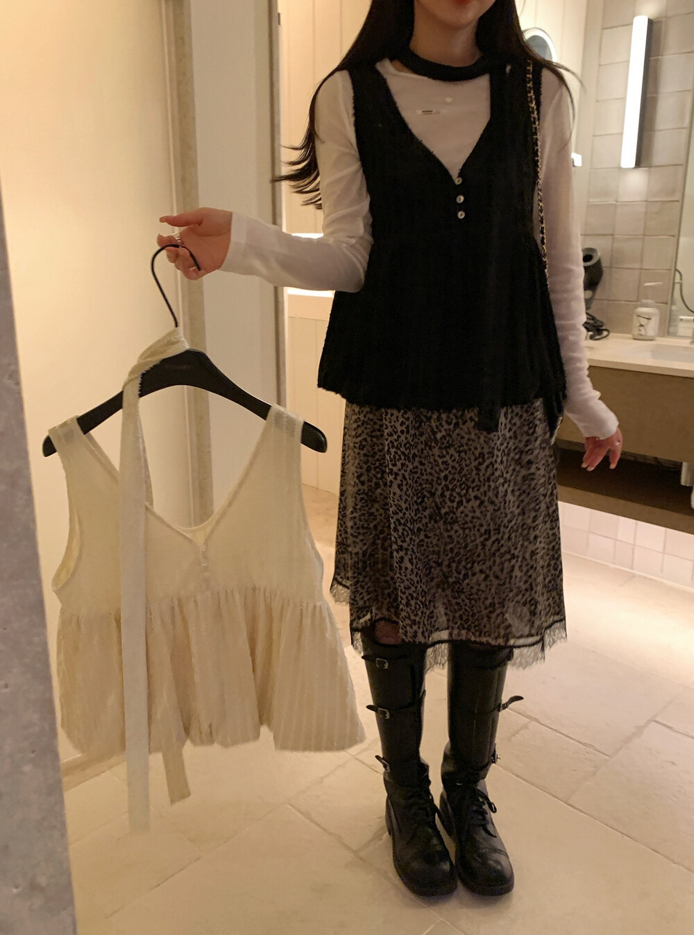 白ブラウスの定番として人気の上品なノースリーブベスト。